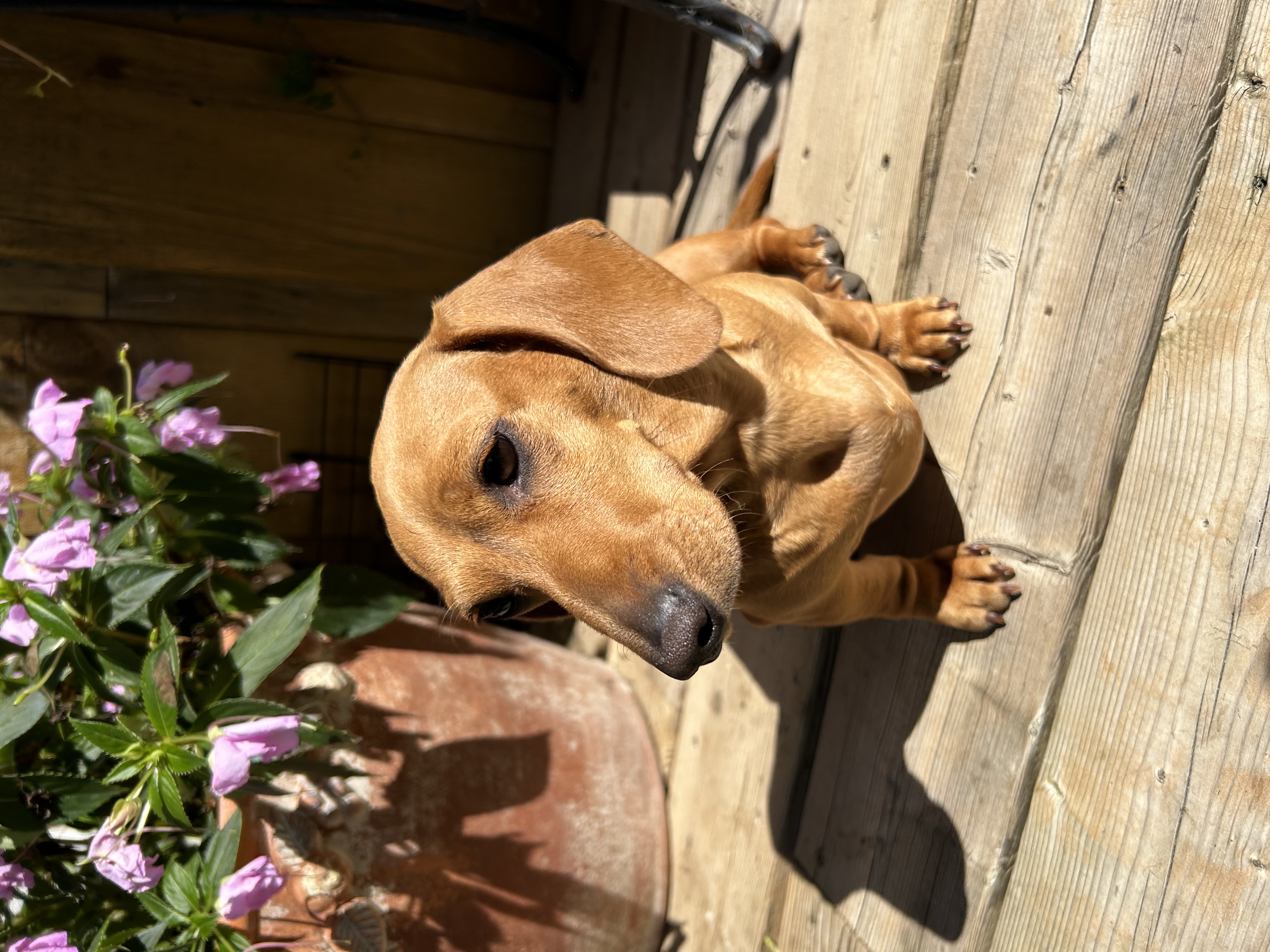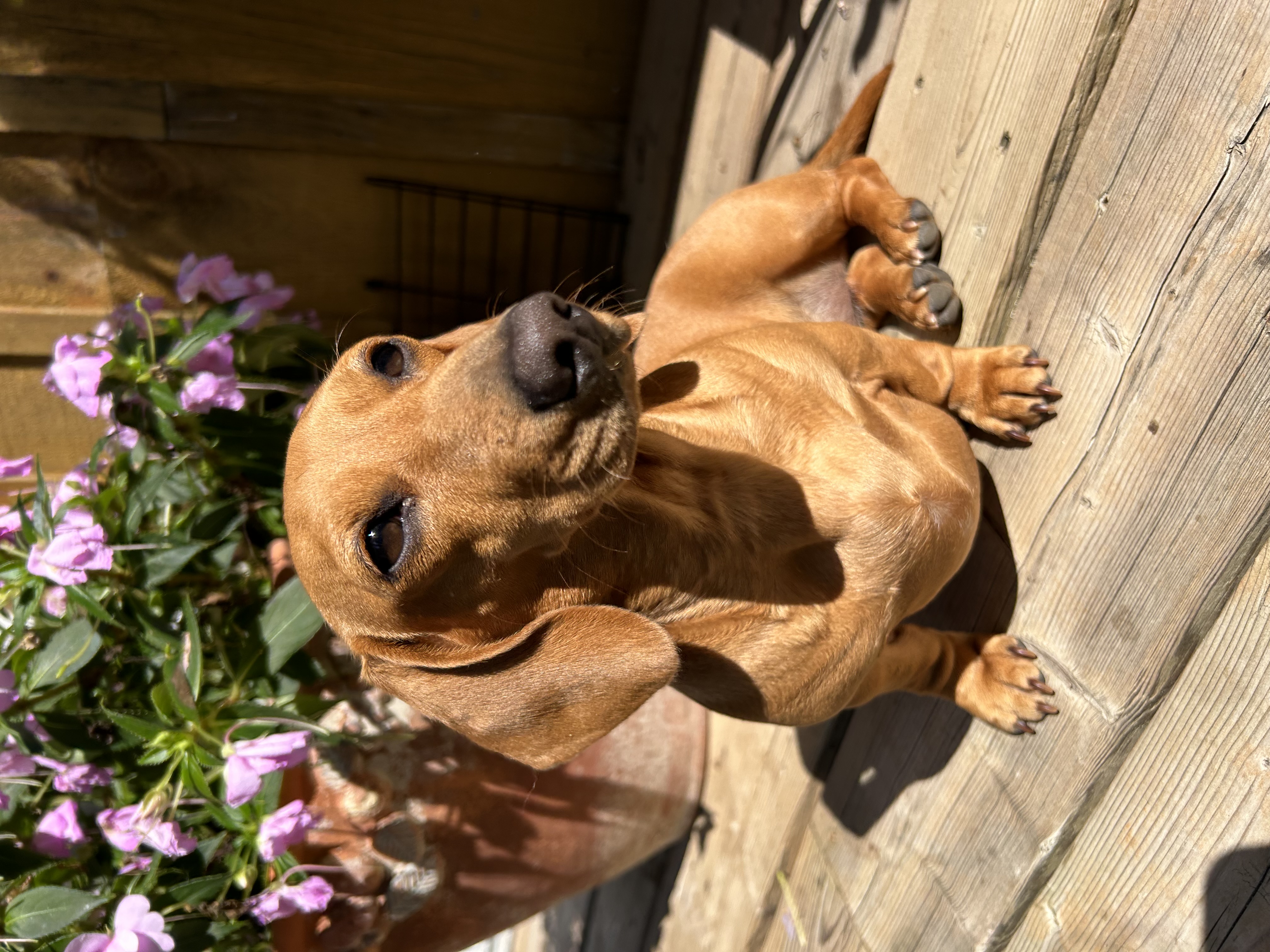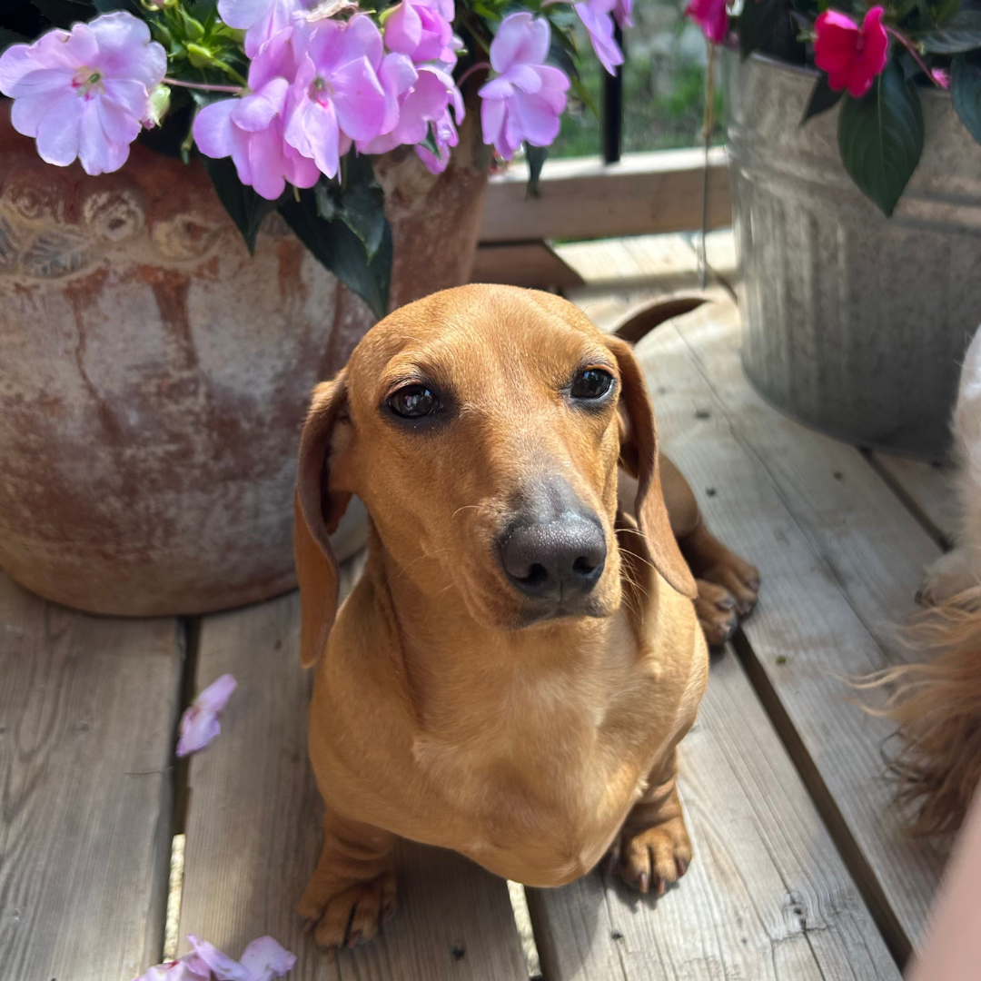 If you are looking for a tiny dachshund, you may want a puppy of Maple! She is a very petite girl, weighing in at about 9 pounds. She is the SWEETEST happiest girl! Maple loves to run and dig in the snow, and she has the muscles to prove it. She enjoys cuddling on a lap on the couch with her favorite blankie. And she’s also a bit of a food hog, lol!